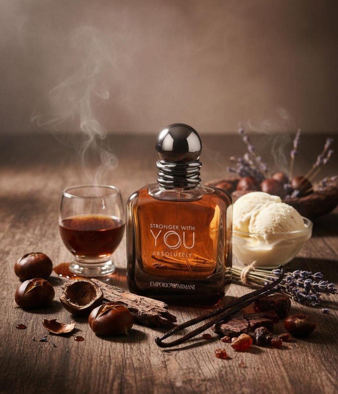 جورجیو آرمانی استرانگر ویت یو ابسولوتلی عطری گرم و تند با رایحه شرقی فوژه و محصول ایتالیا است که با ترکیب اعتیادآور شاهبلوط و وانیل، قدرتمندترین نسخه از این خانواده محسوب میشود.