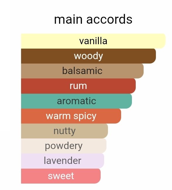 این ادوپرفیوم ایتالیایی با ترکیبی از ترنج و صمغ لامی آغاز میشود که شروعی تند و در عین حال صیقلی دارد.