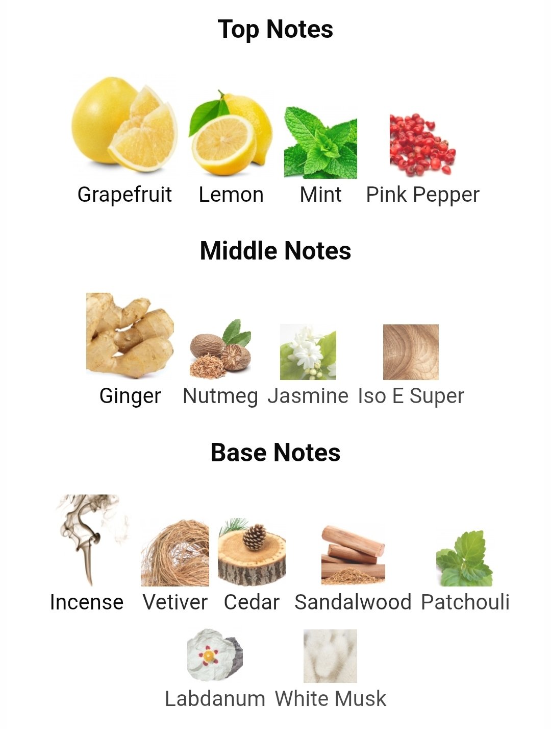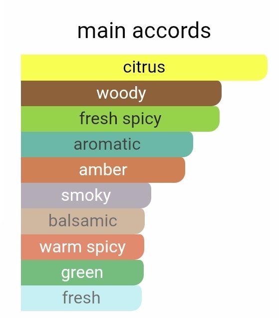 در نت میانی، گل یاس، زنجبیل، درخت سدر و خس خس رایحهای پیچیده و مردانه ایجاد میکند که هارمونی خاصی به عطر میبخشد.
