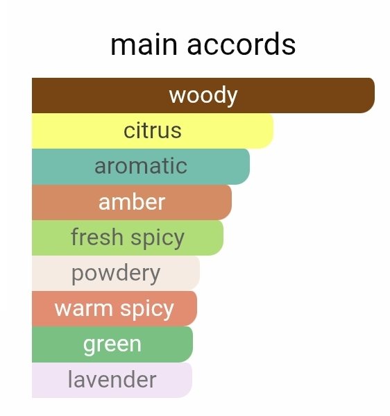 این عطر مردانه در گروه بویایی چوبی معطر قرار میگیرد و با شروعی تازه از مرکبات و نعناع، حس طراوت و تمیزی را القا میکند. در ادامه، ترکیب اسطوخودوس، آناناس و شمعدانی رایحهای متعادل و خوشساخت ایجاد میکند که نه تند است و نه شیرین.