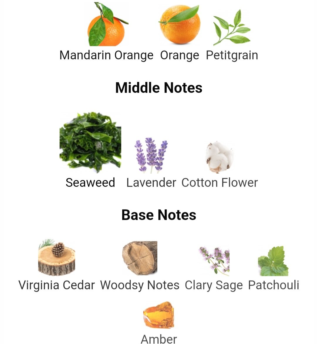 در نتهای میانی، اسطوخودوس در کنار گل پنبه و جلبک دریایی فضایی آرام، تمیز و کاملاً دریایی ایجاد میکند که شخصیت عطر را مردانهتر و خنکتر میسازد و حس حضور در کنار دریا را تداعی میکند.