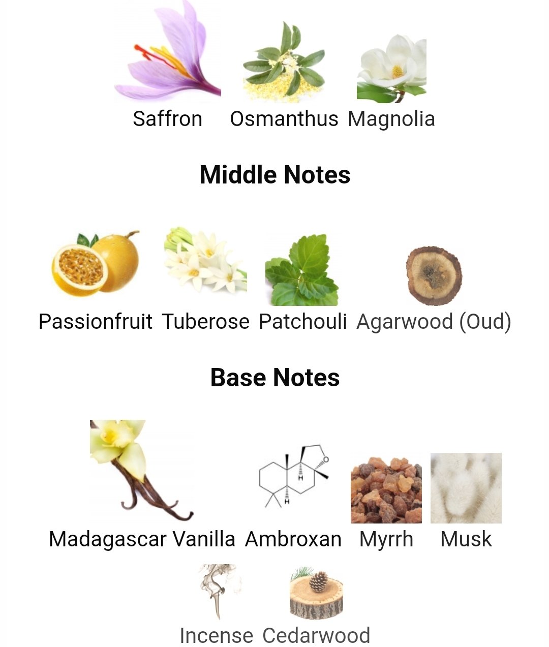 آمبروکسان ,چوب سدر ,مشک ,وانیل |