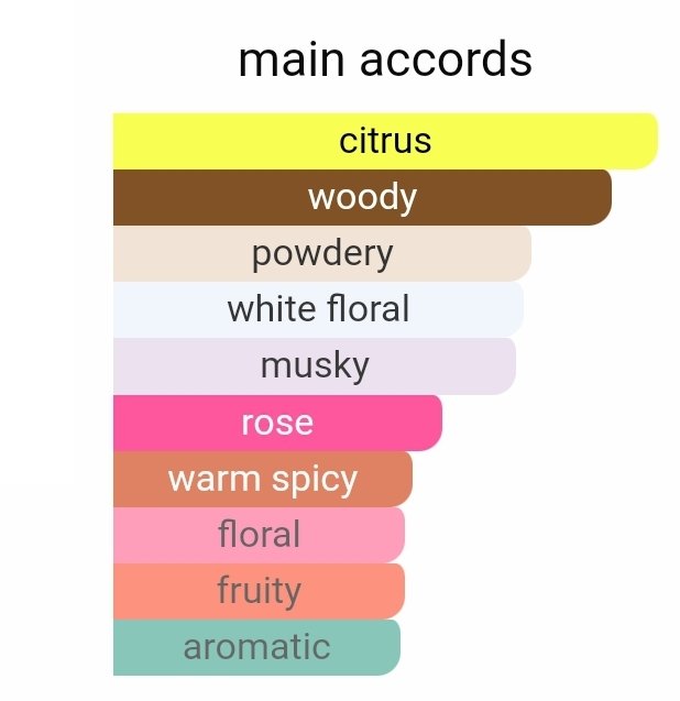 در شروع، ترکیب ماندارین و ترنج رایحهای شفاف، تازه و انرژیبخش ایجاد میکند که حس طراوت و سرزندگی را بهخوبی منتقل مینماید.