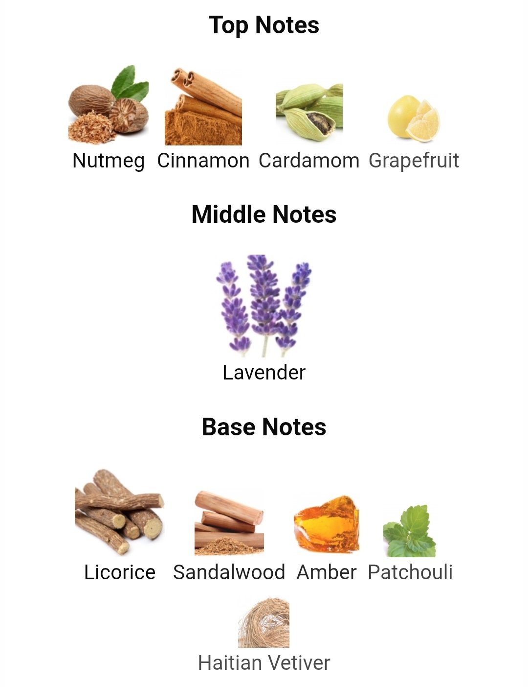 چوب صندل ,شیرین بیان ,کهربا ,نعنا هندی ,وتیور هائیتی |