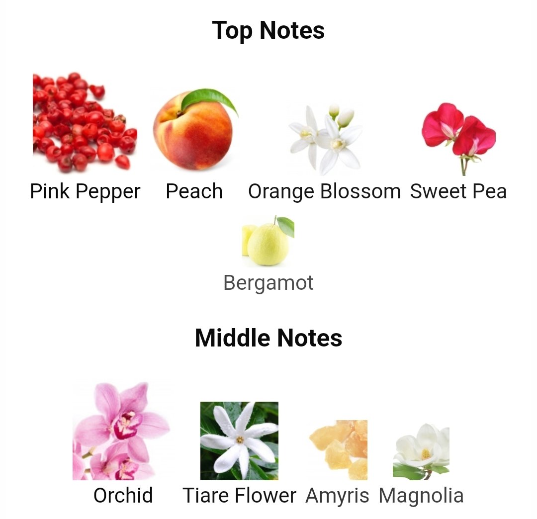در نت میانی، رایحههای ارکیده، آمیتیست و مگنولیا حس لطافت و طراوت را به عطر اضافه میکنند.