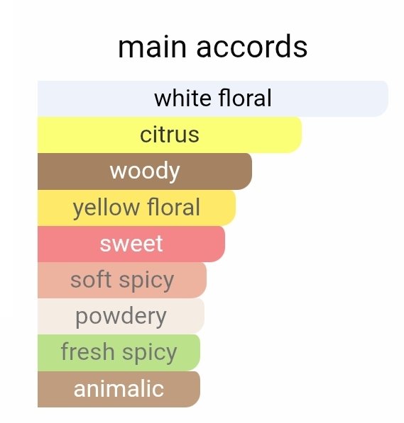رایحه عطر با نت شاداب ترنج آغاز میشود که حس تازگی و طراوت را به خوبی منتقل میکند. در قلب عطر، ترکیبی دلنشین از گل سوسن، یلانگ یلانگ و شکوفه پرتقال قرار دارد که فضای گلی و زنانهای ایجاد میکند. در نهایت، نتهای گرم و جذاب کهربا، چوب صندل و وانیل رایحه را ماندگار و دلنشین میکنند.