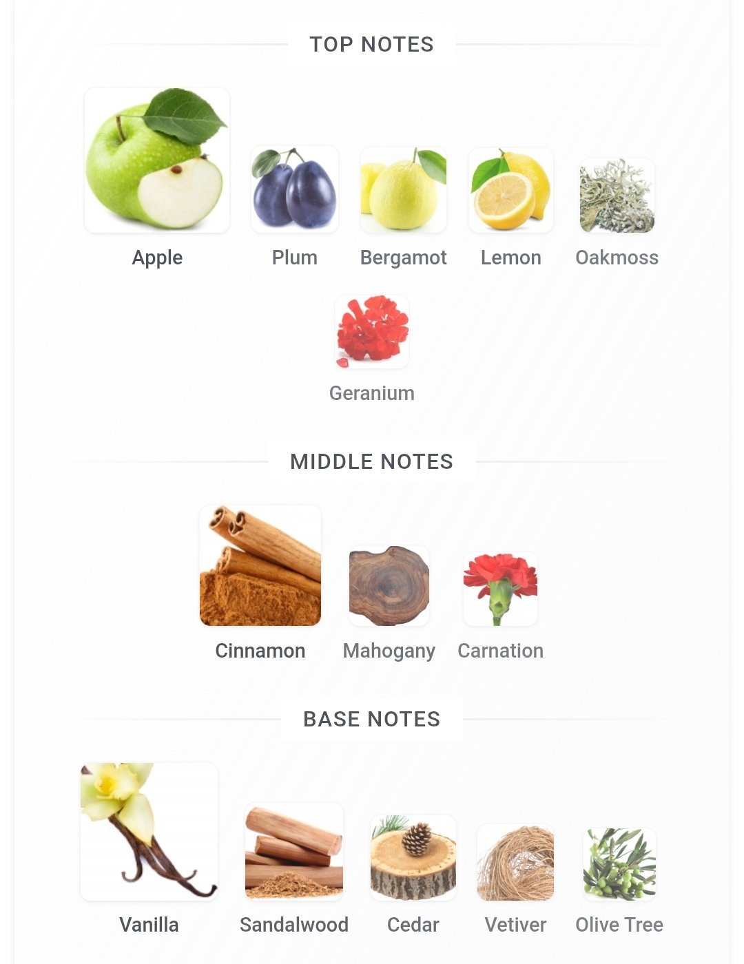 چوب صندل ,خس خس ,درخت زیتون ,سدر ,وانیل |