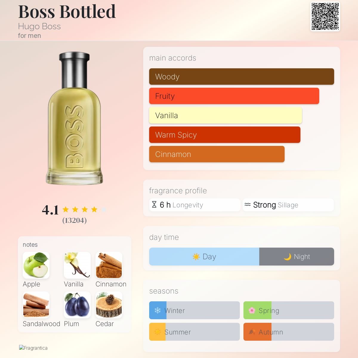 هوگو باس باتلد مردانه عطری ملایم و تلخ در گروه معطر ادویهای و محصول آلمان است. این ادوتویلت جذاب با ترکیب هنرمندانه سیب، دارچین و نتهای چوبی، مظهر مردانگی، شیکپوشی کلاسیک و اعتمادبهنفس است.
