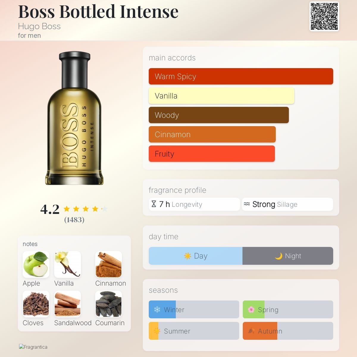 هوگو باس باتل اینتنس مردانه عطری گرم و تلخ در گروه چوبی ادویهای و محصول آلمان است. این ادوپرفیوم جذاب با ترکیب ادویههای گرم، سیب و چوب صندل، مظهر مردانگی، قدرت و شیکپوشی مدرن است.