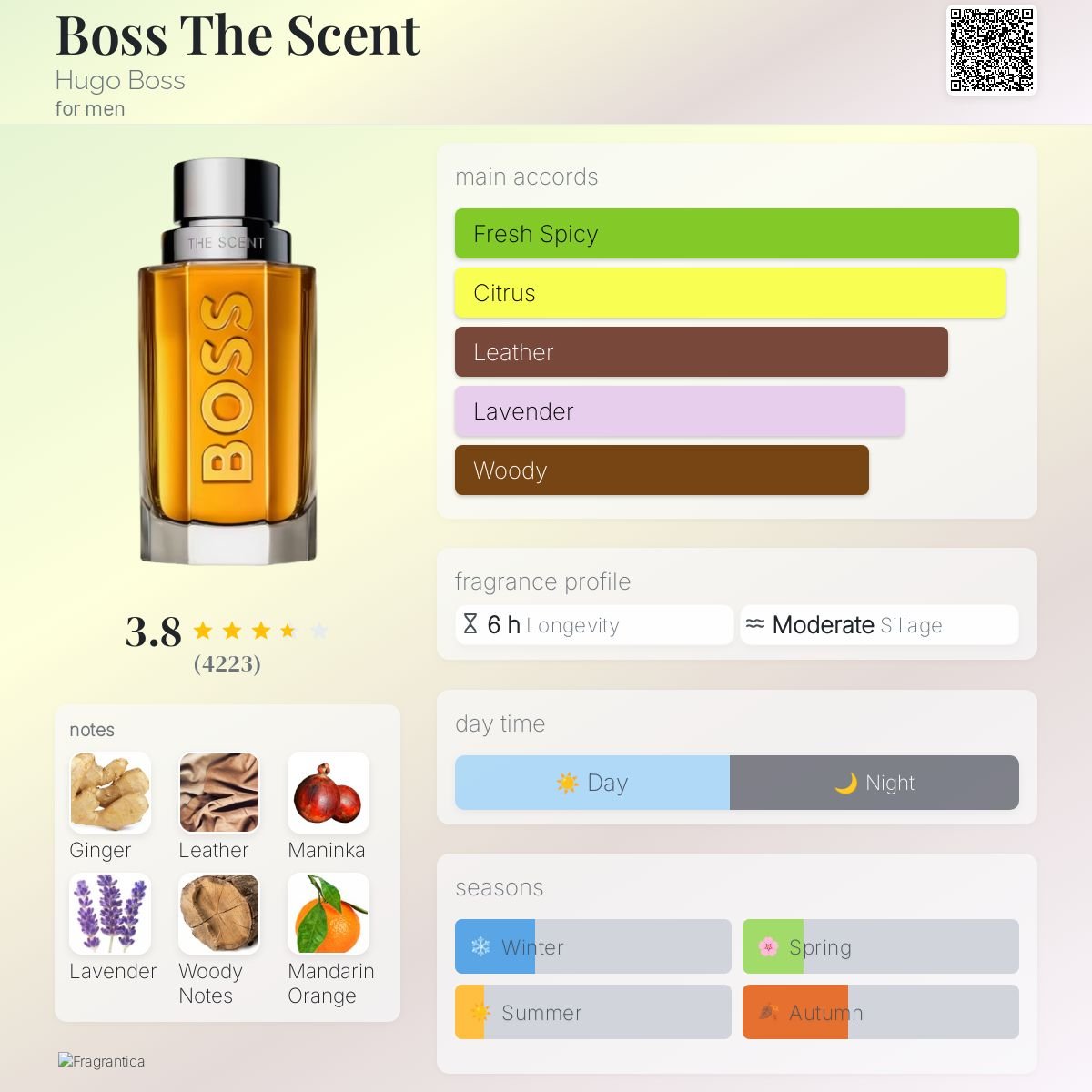 عطر هوگو باس د سنت، نمادی از جذابیت اغواگر، اعتمادبهنفس آرام و ظرافت مردانه است. این ادوتویلت با ترکیبی تند و انرژیبخش از زنجبیل آغاز میشود. به همین دلیل، در همان لحظات ابتدایی حسی از پویایی، مدرنیته و کنجکاوی را در محیط اطراف پراکنده میکند.