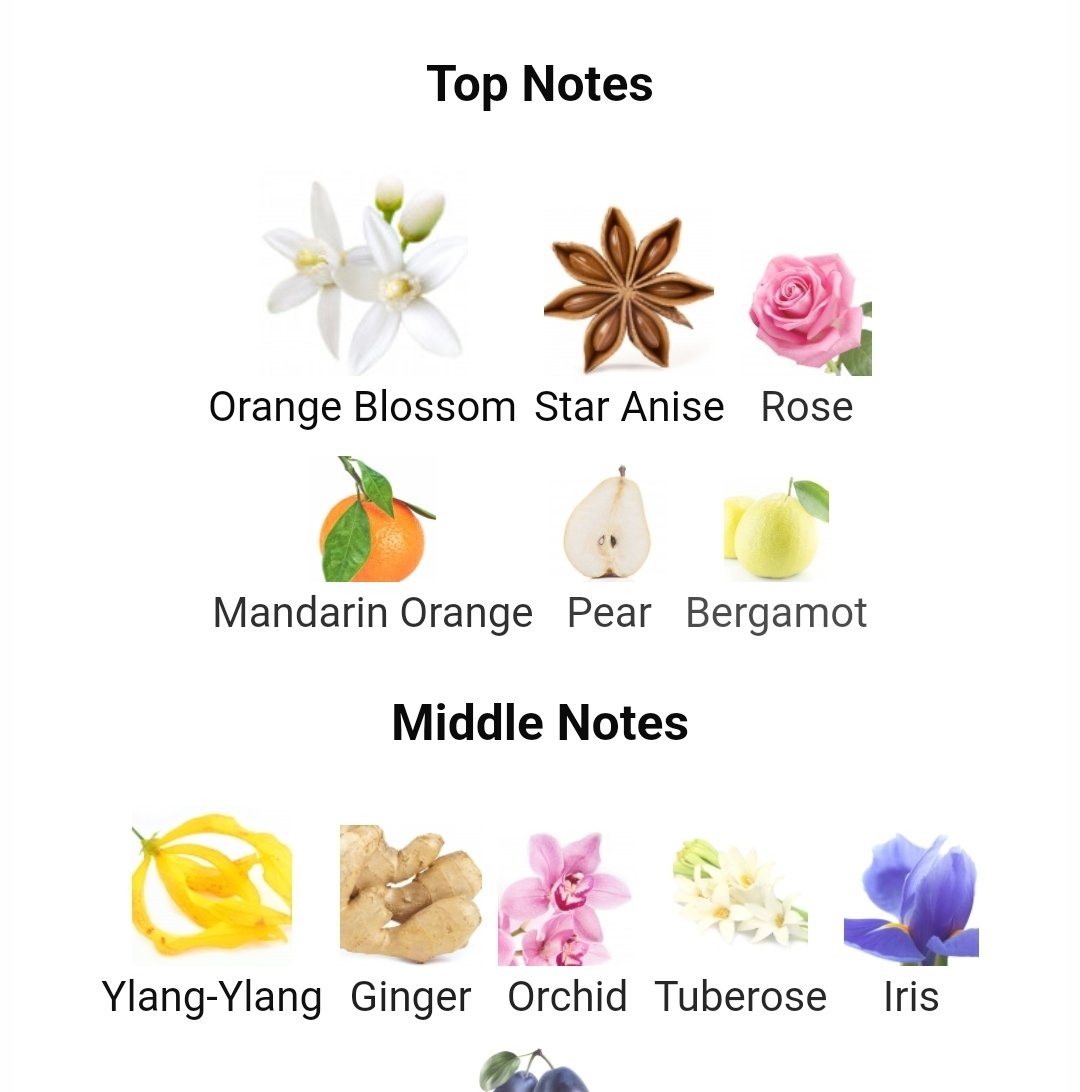 در نتهای میانی، ارکیده، زنبق، زنجبیل و آلو به عطر عمق بیشتری میبخشند و حالتی گلی، کرمی و کمی پودری ایجاد میکنند که بسیار لطیف و اغواکننده است و امضای خاص این عطر را شکل میدهد.