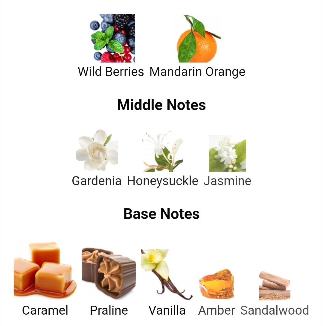 در نتهای ابتدایی، ترکیب توت وحشی و نارنگی حس طراوت، شادابی و شیرینی ملایمی ایجاد میکند که شروعی سرزنده و دوستداشتنی به عطر میبخشد و حس انرژی و نشاط را منتقل میکند.
