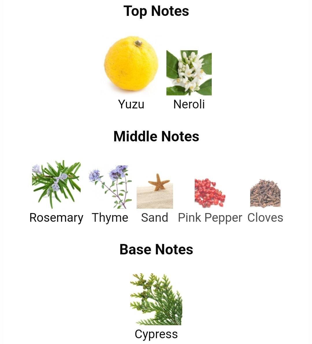 در پایان، نت عمیق و آرامشبخش چوب سرو رایحه را تکمیل میکند و حسی طبیعی، تمیز و ساحلی به عطر میبخشد.