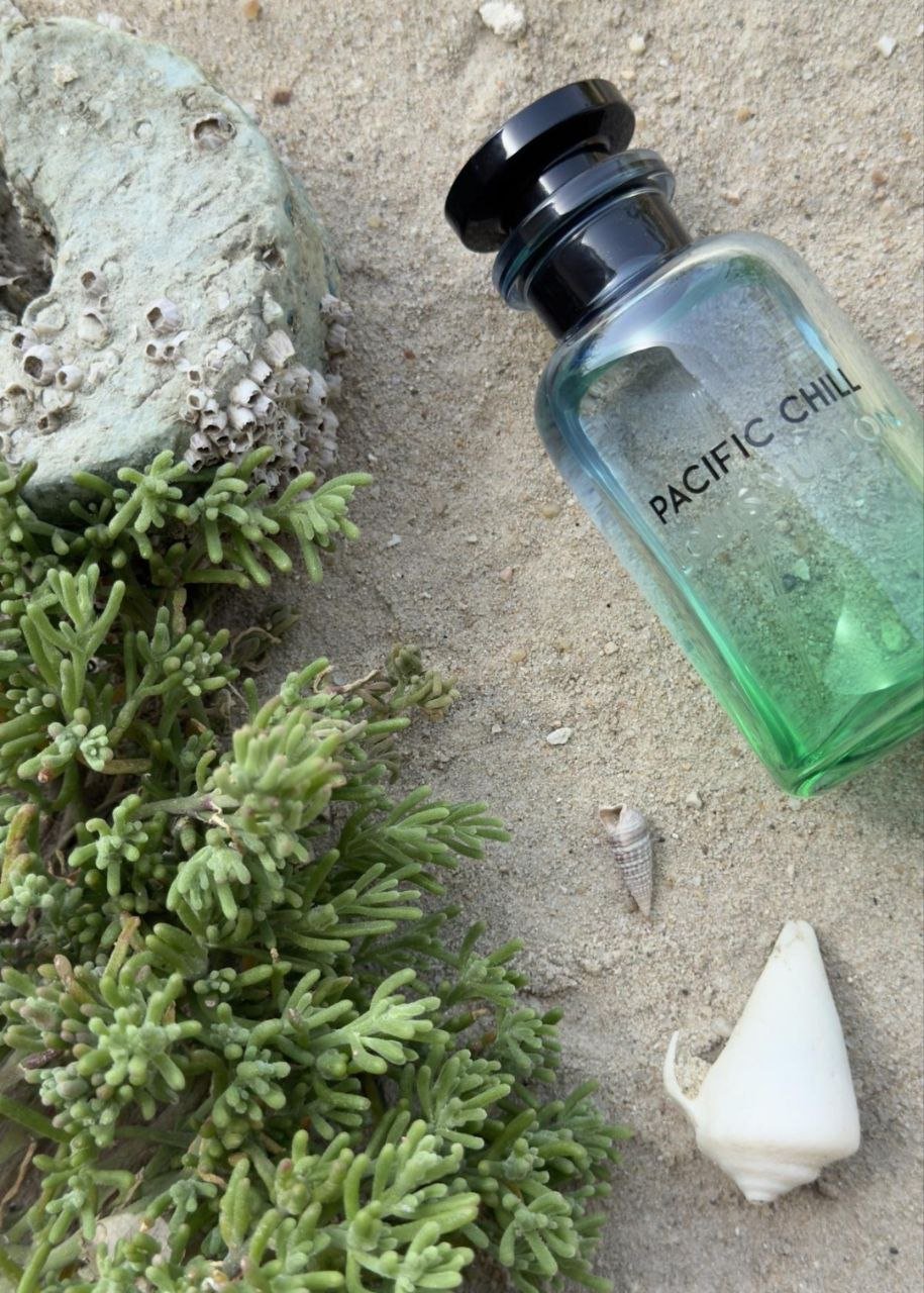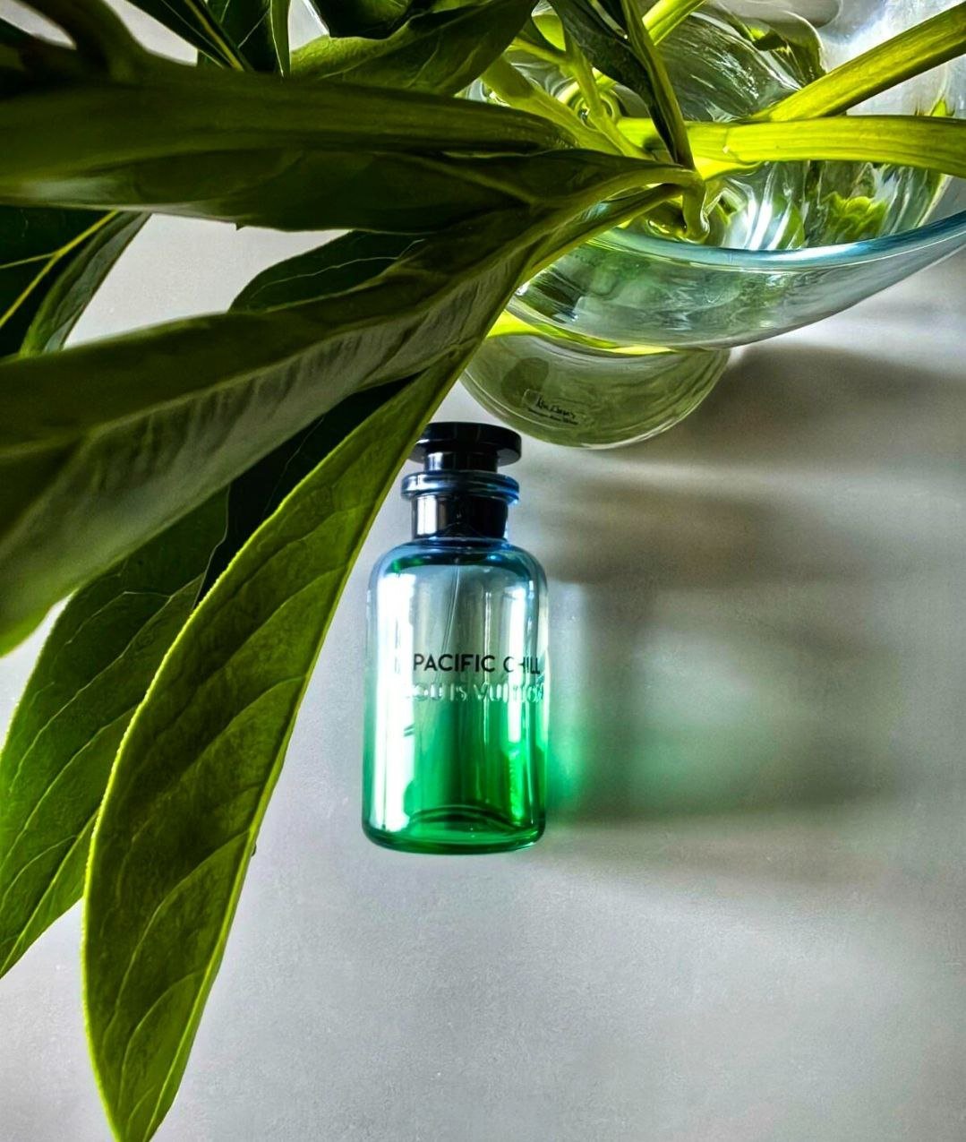 عطر Pacific Chill از برند لوکس Louis Vuitton در سال 2023 معرفی شد؛ عطری خنک، تلخ و سرزنده که حس آرامش اقیانوس و نسیم پاک صبحگاهی را تداعی میکند. آغاز رایحه با ترکیبی پیچیده و شفاف از لیمو، پرتقال، نعنا، بالنگ، انگور سیاه و گشنیز شروع میشود؛ نتهایی مرکباتی–گیاهی که انرژی بالایی منتقل میکنند و بهسرعت فضا را پر میسازند.