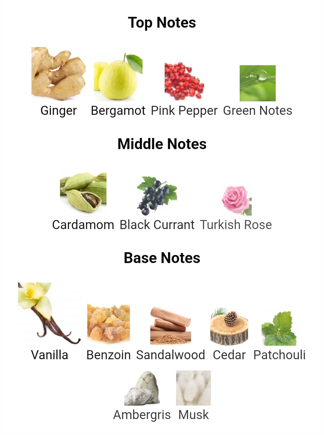 سدر ,صندل سفید ,عنبر ,لوبان ,مشک ,نعنا هندی ,وانیل |