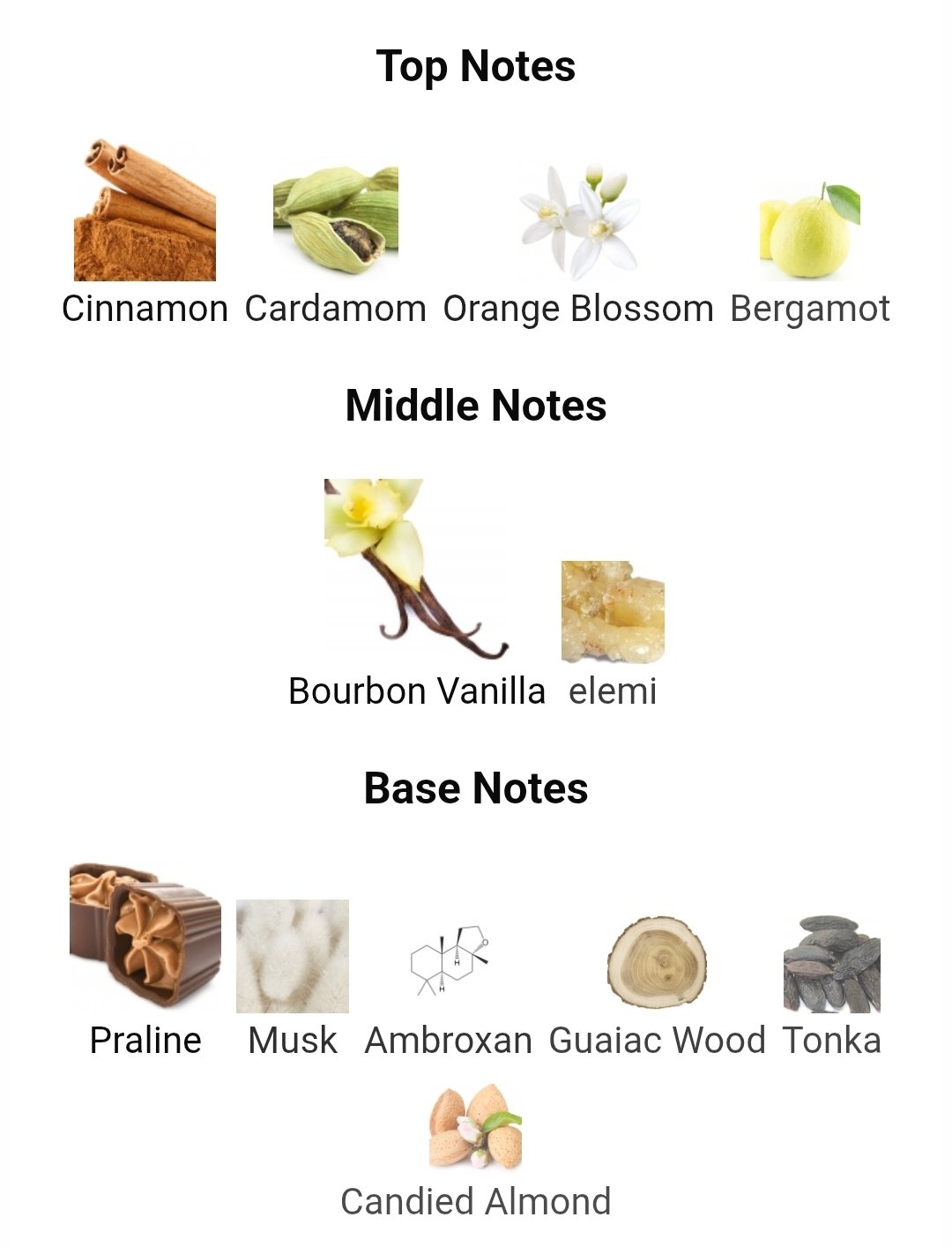 در نت پایانی، پرالین، مشک، آمبروکسان و چوب گوایاک گرما و عمق بیشتری به عطر میبخشند و اثری ماندگار و مردانه بر جای میگذارند.
