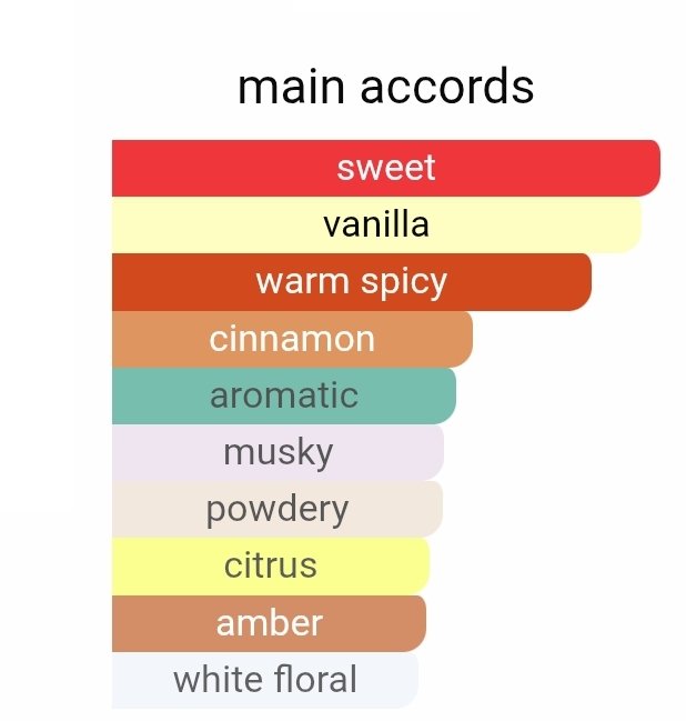 در نت ابتدایی، ترکیب هل، دارچین، ترنج و شکوفه پرتقال شروعی ادویهای، گرم و در عین حال شاداب ایجاد میکند که حس قدرت و اعتمادبهنفس را منتقل مینماید.