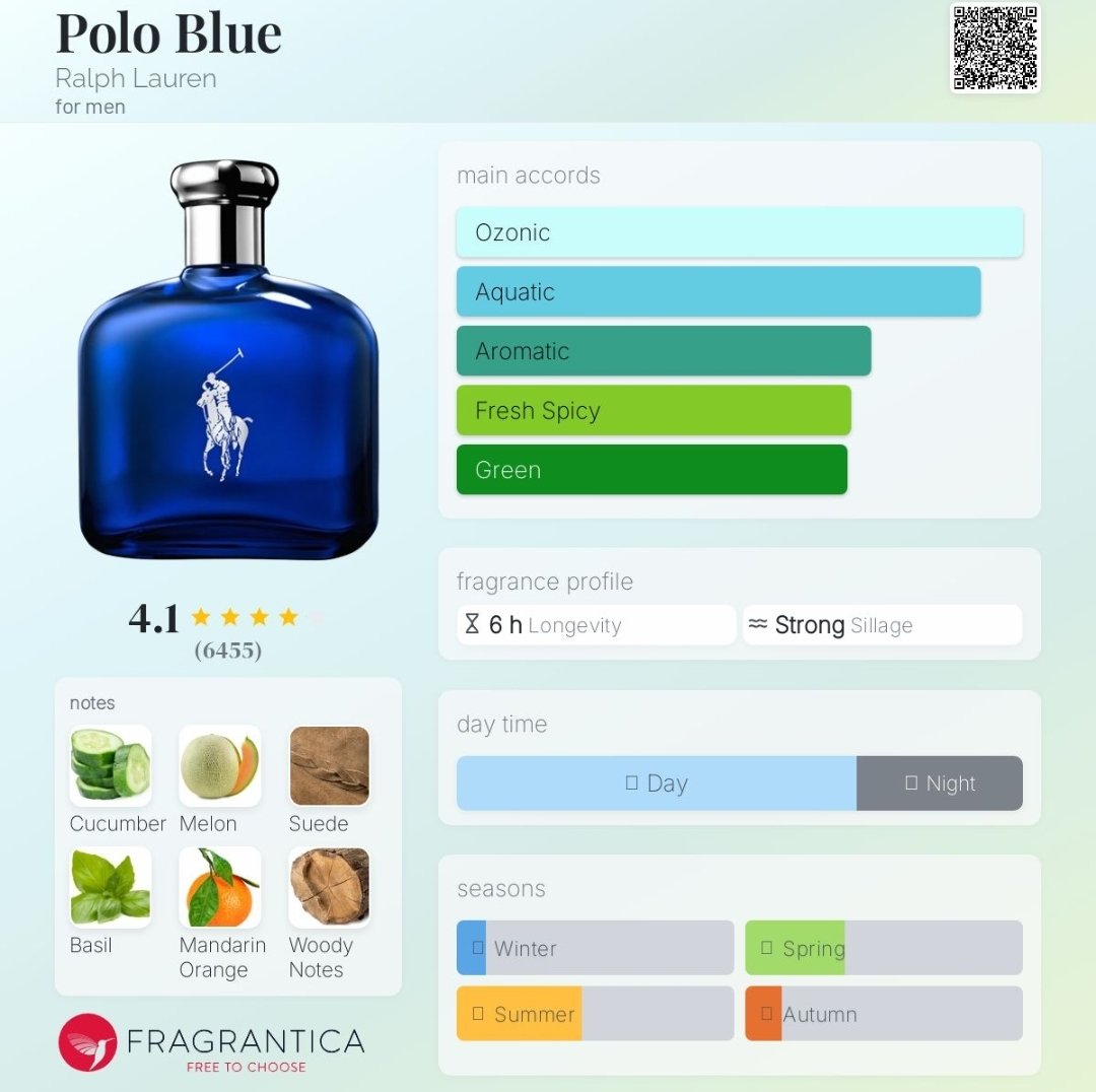 در نت پایانی، جیر در کنار نتهای چوبی و مشک، رایحهای نرم، مردانه و ماندگار بر جای میگذارد. با ماندگاری و پخش بوی متوسط، رالف لورن پولو بلو انتخابی عالی برای فصول گرم سال، محیط کار و استفاده روزمره است.