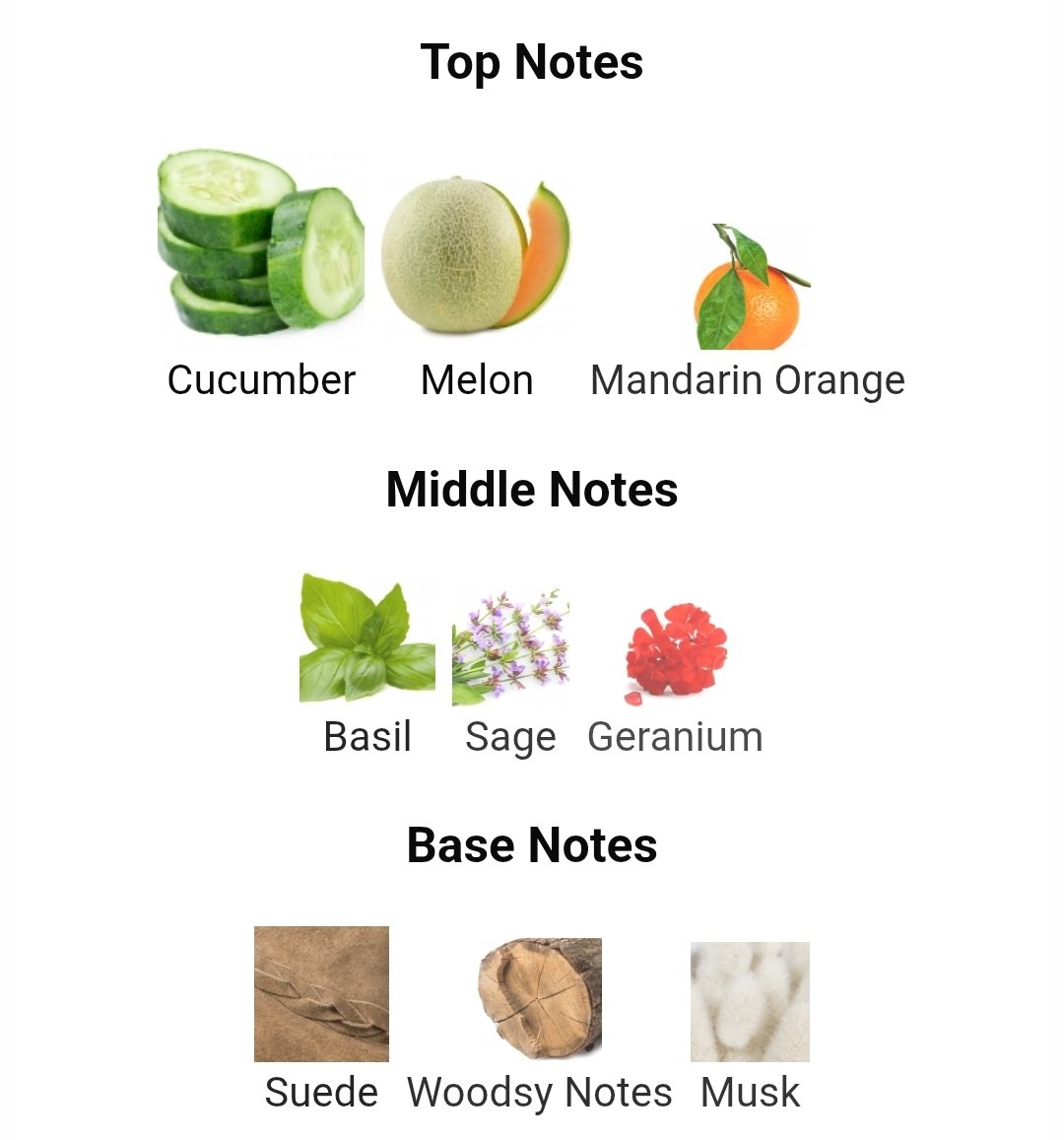 در نت میانی، گل شمعدانی، مریم گلی و ریحان حضور دارند که حالتی گیاهی، معطر و کمی تلخ به رایحه میبخشند و تعادل خوبی میان خنکی و عمق ایجاد میکنند.