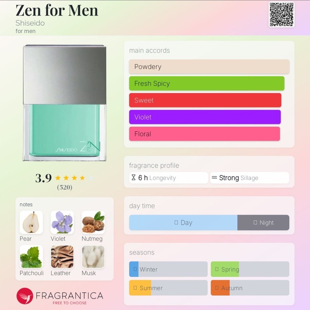 عطر شیسیدو زن مردانه که در سال ۲۰۰۹ توسط برند ژاپنی شیسیدو معرفی شده، عطری خنک و تلخ از خانواده بویایی چوبی است. این عطر با ترکیبی از نتهای تازه و مرکباتی مانند گلابی، پرتقال و ترنج در نت ابتدایی شروع میشود که انرژی و طراوت را به همراه دارد. نت میانی شامل بنفشه، جوز و گل صد تومانی است که حالتی گیاهی و کمی ادویهای به رایحه میبخشد. در نت پایانی، مشک، نعنا هندی و چرم گرما و عمق خاصی ایجاد میکنند. با ماندگاری و پخش بوی متوسط، این عطر مناسب استفاده روزمره در فصول گرم و معتدل است.