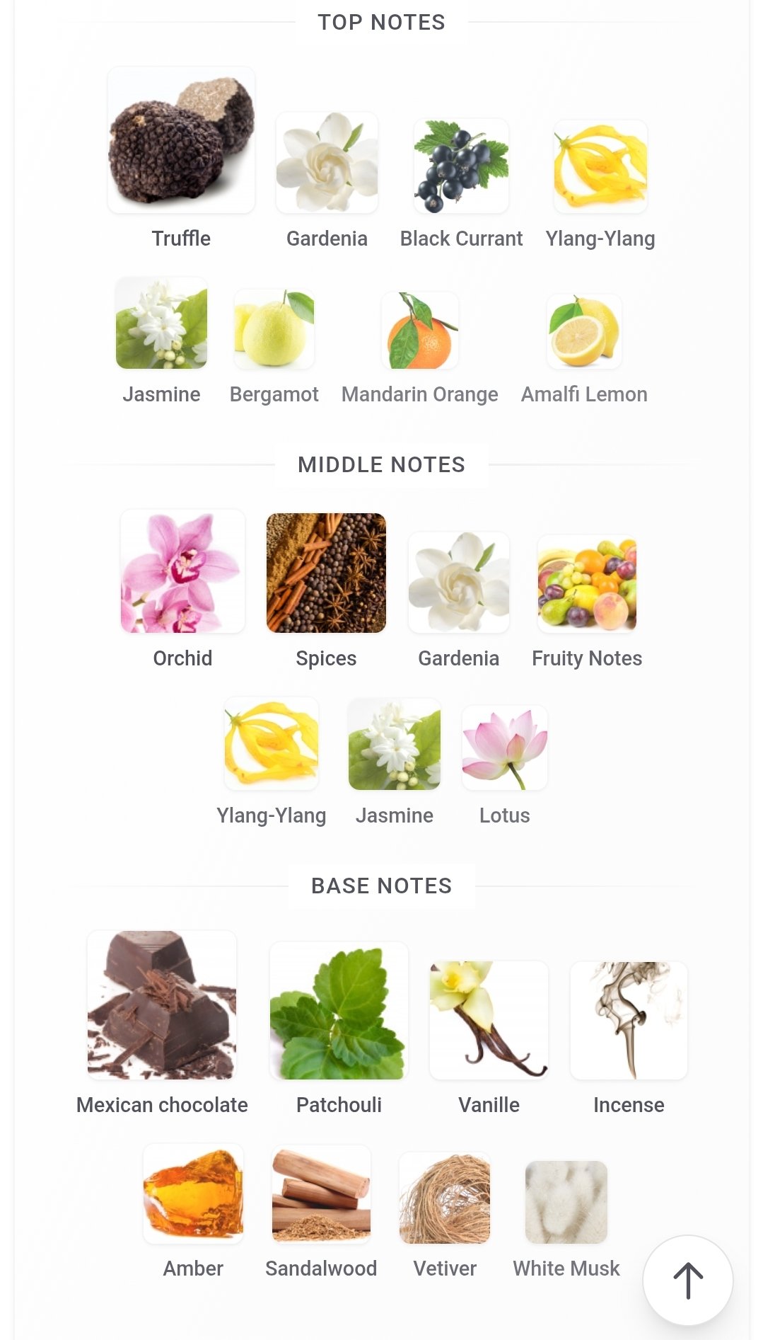 انگور فرنگی سیاه ,ترنج ,قارچ توبر ,گاردنیای یاسمنی ,گل یلانگ ,لیمو ترش ,نارنگی ,یاس |
