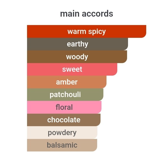 چوب صندل سفید ,خس خس ,روایح دودی ,شکلات ,کهربا ,نعنا هندی ,وانیل |