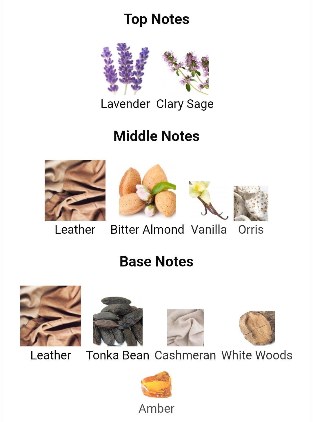 این ادوپرفیوم آمریکایی با نتهای گیاهی سالویا و اسطخدوس آغاز شده و در قلب خود با ترکیب جسورانه چرم، بادام و وانیل، رایحهای منحصربهفرد، غنی و مدرن را به نمایش میگذارد.