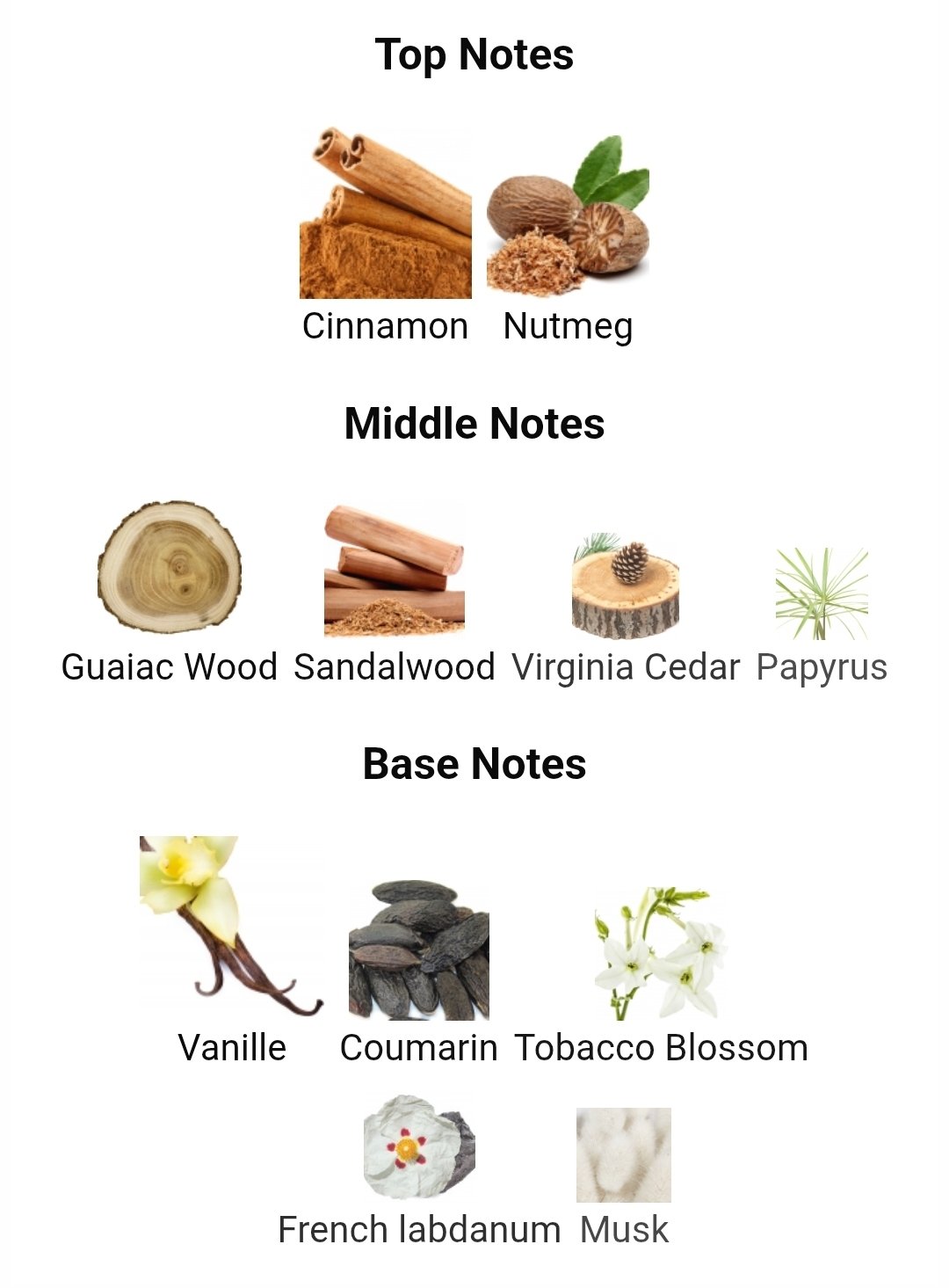 در قلب این عطر، ترکیبی غنی از چوبهای گرانبها شامل پاپیروس، سدر، چوب گایاک و چوب صندل قرار دارد که شخصیتی عمیق و مقتدر به رایحه میبخشد. در نهایت، نتهای پایانی با حضور شکوفه تنباکو، وانیل، مشک و کومارین، پایانی پودری، شیرین و بسیار ماندگار را رقم میزنند. این عطر با ماندگاری ۹ از ۱۰ و پخش بوی ۹ از ۱۰، یکی از قدرتمندترین انتخابها برای شبهای برفی زمستان و مجالس باشکوه است.