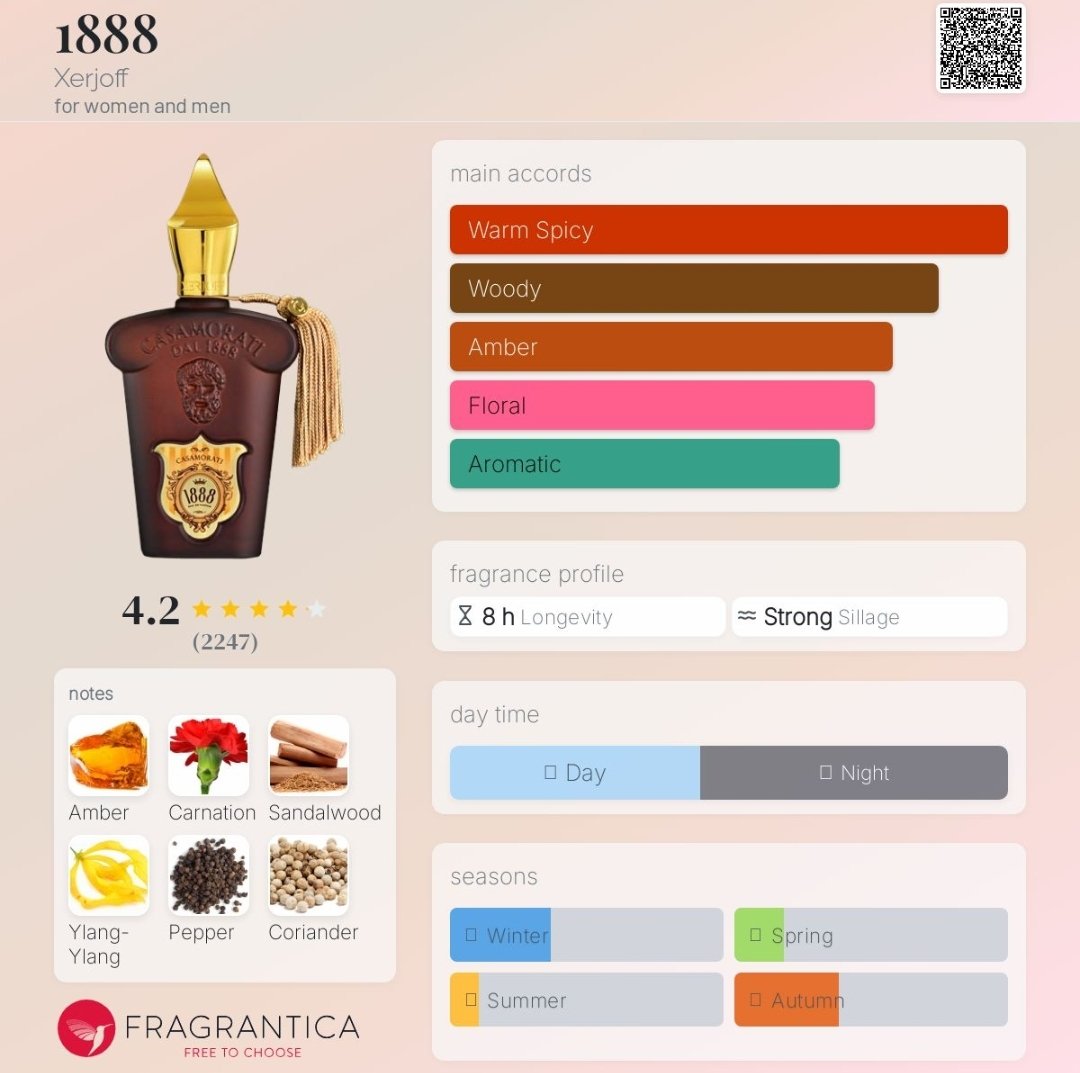 عطر زرجف کازاموراتی ۱۸۸۸ مردانه زنانه رایحهای گرم و شیرین دارد و در گروه بویایی شرقی گلی قرار میگیرد. این عطر با حالوهوایی لوکس، کلاسیک و عمیق طراحی شده و مناسب افرادی است که به رایحههای غنی، ادویهای و گلی با شخصیت خاص علاقه دارند.