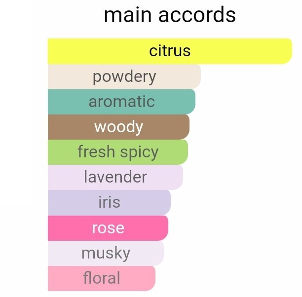 نتهای ابتدایی با لیمو ترش، گریپ فروت و ترنج شروع میشود که حالتی تازه و شاداب ایجاد میکند.